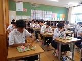 9月1日(木) 本日は、「防災の日」です。台風、地震、津波等の災害についての認識を深め、これに対処する心構えを準備することは大切な事です。今日の給食の献立は、災害時の非常食『救給カレー』でした。生徒は、給食を食べながら、災害に対する意識を高めることができました。