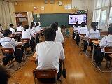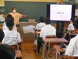 9月2日(金) 本日の2年生の「総合的な学習の時間」に、『つの未来学』の授業がありました。『職場体験学習』の事前学習として、今回は、都農町内で働く4名の方を講師としてお迎えし、講話をしていただきました。働くことの意味を考える良い機会になりました。