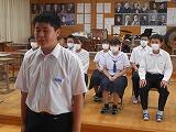 9月15日(木) 本日、「西都児湯地区中学校秋季体育大会」の『選手激励会』を行いました。出場する各部活動のキャプテンが、力強く大会での抱負を語ってくれました。大会は、9月24日(土)から、西都児湯地区の各会場で行われます。新チームになって初めての大会となります。どの部活動も精一杯頑張って力を発揮して欲しいと思います。各部の健闘を祈ります。