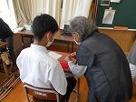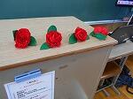 9月20日(火)3校時更生保護女性部会都農支部の皆様10名を講師に招き、2年生がコサージュ作りに挑戦しました。赤きバラのコサージュでしたが、最初は苦戦しました。講師の皆様に教えてもらいながら、最後はきれいなコサージュを作ることができました。