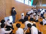10月18日(火) 本日、「高校説明会」を行いました。学校紹介をして頂いたのは、高鍋高等学校・高鍋農業高等学校・妻高等学校・佐土原高等学校・宮崎北高等学校・日向高等学校・日向工業高等学校・富島高等学校・宮崎日大高等学校・日章学園高等学校・宮崎学園高等学校・鵬翔高等学校の、県立8校・私立4校の計12校です。生徒は、1コマ50分の説明を5つのブースに分かれて、3校の説明を受けました。説明会を通して、生徒達は高校進学に対する意識を高めることができ、高校の先生方からは、話を聞く態度や取り組む姿勢が大変素晴らしいと、お褒めの言葉も頂きました。