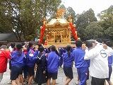 11月17日(木) 本日の5、6校時の「総合的な学習の時間」に、3年生全員で都農神社に赴き、『御神輿』を担がせていただきました。これは、8月の「都農神社大祭」で3年生男子が担ぐ予定でしたが、新型コロナウイルス感染拡大の影響で中止となっため、本日、体験させていただいたものです。「想像以上にとても重かった」と生徒は感想を語っていました。
