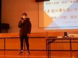 12月23日(金) 本日は「終業の日」でしたが、『終業式』の前に、「夢・未来講演会」を行いました。本校の卒業生で、J2プロサッカー選手の河野貴志さんを講師としてお招きし、『未完の夢を追いかけて』という演題で講演をしていただき、その後は、生徒の質問に答えていただいたり、生徒とともにサッカーの試技をしていただきました。生徒は、貴重なお話を聞くとともに有意義な時間を過ごすことができました。
