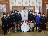 12月27日(火)都農中学校美術部の作成した来年度の干支「うさぎ」の絵馬を都農神社に奉納しました。絵に描いた「うさぎ」がまっすぐに見つめるその視線に、新しい年への決意を感じるような作品が飾られましした。年末年始に都農神社に参拝される方は、ぜひご覧ください。(この時の様子は12月28日(水)18:30~18:45分のケーブルテレビWaiWaiニュースの中で紹介されるそうです。また当日2時間おきに再放送もあるそうです。)