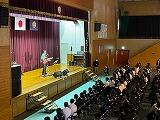 3月13日(月) 本日、体育館において「学年一斉道徳(3年)」の授業(講話)を行いました。都農小学校の石川校長先生を講師としてお招きし、卒業を控えた3年生に対して『貢献』というテーマでお話をしていただきました。