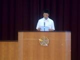 7月21(金) 令和5年度「第1学期終業式」を行いました。式の中で、1年代表:黒木悠之介さん、2年代表:河野優希さん、3年代表:黒木愛華さんの3名が『1学期の反省』を発表してくれました。夏休みは、8月27日までと長期間になりますが、交通事故や水難事故、感染症予防など健康・安全面に留意し、特に、『命を大切にする行動』を心がけて、有意義な夏休みを過ごして欲しいと思います。
