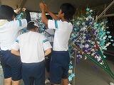 7月28日(金)夏祭りの柳装飾と太鼓台の組み立てを行いました。柳の枝1本1本に紙花を結んで、きれいな花飾りを作りました。その後、組み立てた太鼓台を実際に担いでみました。3年生の保護者のみなさまのご協力を得て、きれいな太鼓台ができました。8月1日(火)には中学生の元気をまちに伝えられるよう頑張ります。