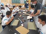 9月22日(金) 本日の5,6校時、1年生は「ものづくり体験教室」を行いました。町内の事業所から講師をお招きし、「『職業』に関する講義」を受けた後、『造園』、『畳』、『左官』、『和裁』の4つの職種に分かれて体験活動を行いました。日頃、あまり目にしない活動に、生徒は興味・関心を持って楽しそうに取り組んでいました。