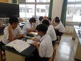 9月25日(月) 本日の4校時の理科の授業で、初の試みとして「学び合いの授業」を行いました。これは、3年生が1年生に対して、分からないところや疑問点などを共有しながら一緒に課題を解決しようとするもので、『質量パーセント濃度』に関する内容に取り組みました。この授業は、生徒同士がつながり、安心して学ぶ関係をつくるとともに、一人では解決できない課題を共同して解決しようとするものです。