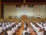 10月26日(木) 本日、宮崎県中学校秋季体育大会「選手激励会」を行いました。地区大会の表彰後、激励会では、生徒会代表の佐藤由望さんが『生徒激励の言葉』を述べ、各部活動のキャプテンが『決意表明』を行いました。最後に、選手を代表してソフトテニス部キャプテンの土工夢生さんが『選手宣誓』を行いました。出場する部活動は、剣道部、弓道部、柔道部、バドミントン部、ソフトテニス部、陸上部です。都農中学校、そして西都・児湯地区の代表として精一杯頑張ってほしいと思います。