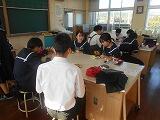 11月17日(金) 本日の「総合的な学習の時間」に、2年生は『つの未来学』に取り組みました。前回、オリエンテーションを行い、「都農町マーケット跡地の有効活用」について考えていくために現地調査を行いました。今回は、その調査をもとに具体的な考えをまとめるために、各グループに分かれて意見交換を行いました。