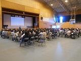 11月21日(火) 本日の午後、「新入生入学者説明会」を行いました。日程説明・諸連絡の後、『校内見学』を行い、体育館に戻って『中学校の概要』、『中学校の学習』、『中学校の生活』などについての説明を行いました。残念ながら、『部活動見学』については、インフルエンザ感染拡大により中止となりました。来年度の新入学予定者数は94人です。