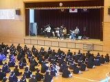 12月19日(火) 宮崎ジャズコネクションの皆さんの「JAZZ演奏」を鑑賞しました。【第1部】『ジャズの名曲を聴く』(1 イン・ザ・ムード 2 楽器紹介 3 スイングしなけりゃ意味がない 4 楽器紹介 5 シング・シング・シング 6 コールアンドレスポンスに挑戦) 【第2部】『聴き馴染みのある曲をジャズで聴く』( 1 日向木挽歌 2 手紙 3 校歌をジャズのリズムで歌ってみよう)というプログラムでジャズを楽しみました。