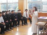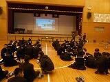 1月16日(火) 本日の6校時とTTの時間に、火災想定の「防災教室」を行いました。東児湯消防組合・都農分遣所から3名の方にお越し頂き、火災発生時の避難の仕方や注意点などについて学びました。また、煙中体験を行い、火災発生時の煙の怖さや行動の仕方などを実際に模擬体験しました。