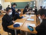 1月31日(水)本日は雨の天気でした。校内では落ち着いた様子で生徒が学習に励んでいました。3年生も入試に向けて友だちと問題を解いたり教え合ったりしていました。