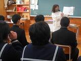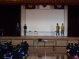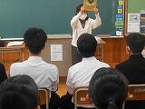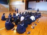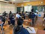 1月16日(火) 本日の6校時とTTの時間に、火災想定の「防災教室」を行いました。東児湯消防組合・都農分遣所から3名の方にお越し頂き、火災発生時の避難の仕方や注意点などについて学びました。また、煙中体験を行い、火災発生時の煙の怖さや行動の仕方などを実際に模擬体験しました。