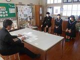 1月19日(金) 本日から2月22日(木)までの6日間、外部から面接官として指導者をお招きして、「面接練習」の仕上げを行います。今回は、都農町教育委員会より6名の方々にお越しいただき、「面接」指導をしていただきました。
