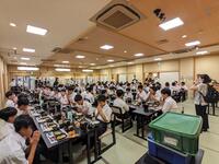 夏休みに入りましたが、朝、学校で勉強している生徒や、ロボットコンテストに向けてロボット作りに精を出している生徒がいました。3年生の三者相談も始まりました。職員は、会議や研修を午前中に行いました。午後は、部活動や三者相談のための時間となります。祭に向けた太鼓の練習も始まりました。