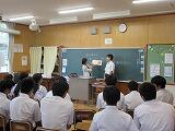 7月5日、夏祭に向けて、都農神社宮司の永友謙二様と、長年、中学校の太鼓台製作や指導に関わってくださっている塩月良一様による講演会が3年生対象に行われました。講演会を通して、3年生のみなさんは、夏祭に関わる由来やこれまでの歩み等について知ることができました。