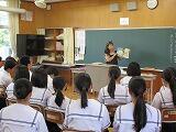7月16日、教頭が、都農小学校の6年生の授業で、都農中学校の説明をしました。また、7月18日、都農東小の6年生で説明をしました。