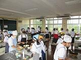7月10日、1年生の家庭科の授業で調理実習が行われました。調理実習は、都農町栄養教諭の宮原氏の指導をいただきました。今回は、簡単な調理を体験することを主な目的とし、ハンバーグを作りました。2学期から、調理計画、包丁の使い方等を学びながら、より本格的な調理に取り組むことになります。