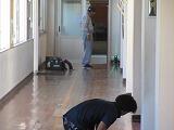 7月29日、事務室と校長室前の床の修繕工事が始まりました。