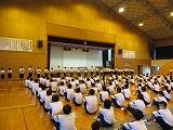 9月24日、都農中の代表として自覚をもたせるとともに、大会に向けての士気を高め、全校で部活動生を応援する雰囲気を作る目的で、地区中学校秋季体育大会の激励会が行われました。