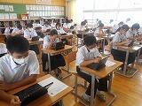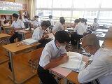 9月4日(月) 今週は、「教育相談」週間になっています。月・火・木・金曜日の6校時とTTの時間を使って対象生徒に対して教育相談を行いますが、その時間を活用して、教育相談の対象生徒以外の生徒は、生徒会の企画による「教え合い学習」を行います。先生役は希望する生徒が行い、最大2名までの生徒に対して「教え合い学習」を行います。先生役の生徒は、事前に教えるための準備をしておく必要があり、お互いに高め合う学習ができることを期待しています。