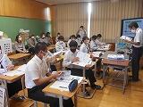 10月18日(火) 本日、「高校説明会」を行いました。学校紹介をして頂いたのは、高鍋高等学校・高鍋農業高等学校・妻高等学校・佐土原高等学校・宮崎北高等学校・日向高等学校・日向工業高等学校・富島高等学校・宮崎日大高等学校・日章学園高等学校・宮崎学園高等学校・鵬翔高等学校の、県立8校・私立4校の計12校です。生徒は、1コマ50分の説明を5つのブースに分かれて、3校の説明を受けました。説明会を通して、生徒達は高校進学に対する意識を高めることができ、高校の先生方からは、話を聞く態度や取り組む姿勢が大変素晴らしいと、お褒めの言葉も頂きました。