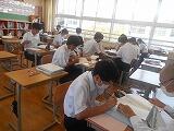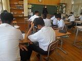 9月4日(月) 今週は、「教育相談」週間になっています。月・火・木・金曜日の6校時とTTの時間を使って対象生徒に対して教育相談を行いますが、その時間を活用して、教育相談の対象生徒以外の生徒は、生徒会の企画による「教え合い学習」を行います。先生役は希望する生徒が行い、最大2名までの生徒に対して「教え合い学習」を行います。先生役の生徒は、事前に教えるための準備をしておく必要があり、お互いに高め合う学習ができることを期待しています。