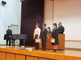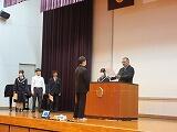 3月25日、全校集会が行われました。まず表彰式が行われ、女子バレーボール部、男女バスケットボール部、吹奏楽部に加え、計算技能コンクール満点者、英語検定合格者、ポスターコンクールの入賞者が紹介されました。今年度も運動・文化の両面で、都農中生の目覚ましい活躍が見られました。来年度のさらなる飛躍も楽しみにしています。
