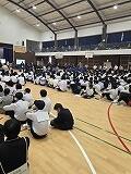 12月8日、人権教育の一環として、講師の先生をお招きし、インターネットに関わるさまざまな問題について学ぶ集会を行いました。動画視聴を交えながら、インターネット上のいじめをはじめ、SNS利用で起こり得るトラブルや、相手を傷つけない発信の大切さについて考える時間となりました。