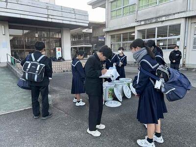 を拾い、登校してくれました。学校では、生徒会執行部がゴミの分