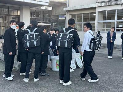 たちが、登校しながらゴミ拾いをして地域に貢献しようとする富島