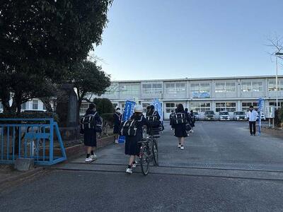 生徒たちは大きな声で『あいさつ運動』を展開し、登校してきた生