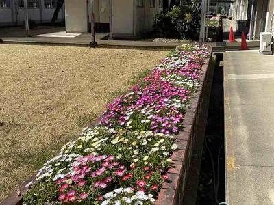 3月中旬に入り、ようやく暖かくなってきましたが、学校の花壇にも