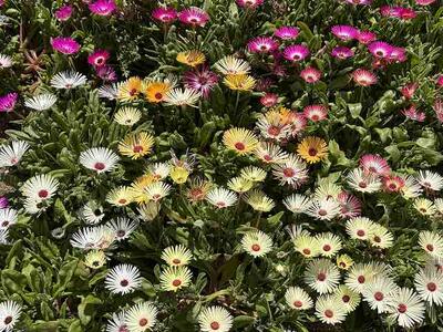 一斉に咲き始め、カラフルな色の花が花壇いっぱいに咲き誇っています。