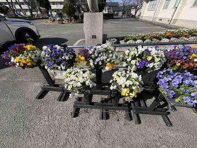 今、本校は3年生の卒業を祝うかのように、明るいきれいな花々で彩られています。