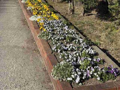 満開の花壇が春を告げてくれています