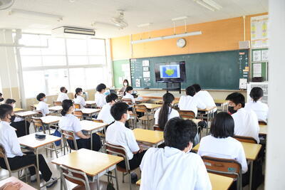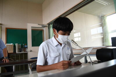 本日、6月7日(火)は地区総体推戴式が行われました。各部の主将がオンライン方式で抱負を述べ、生徒会副会長の長友蔣真くんが激励の言葉を話してくれました。