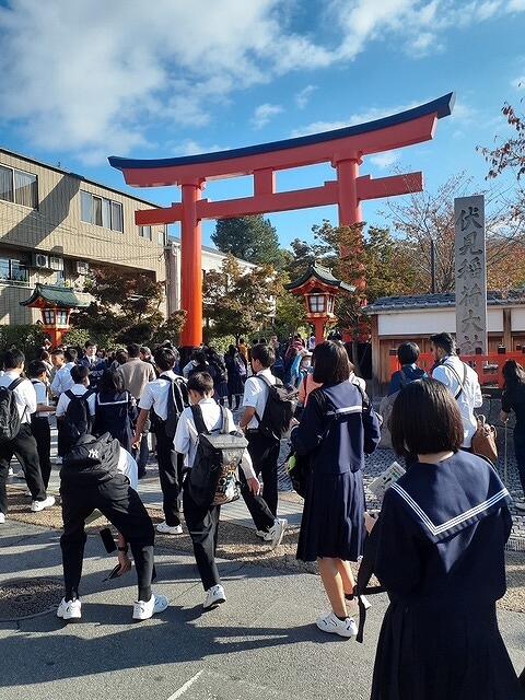 12月5日(金)の6校時に、7日(日)から出発する修学旅行の出発式を行いました。昨日まで、インフルエンザの感染拡大の影響により、学年閉鎖となっていましたので、オンラインで実施しました。修学旅行実行委員が進行し、校長先生の話、実行委員の話など、これから始まる2泊3日の修学旅行への意欲を高める式でした。