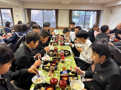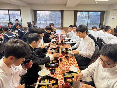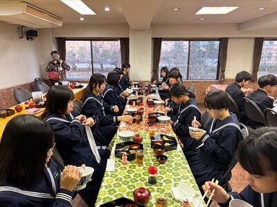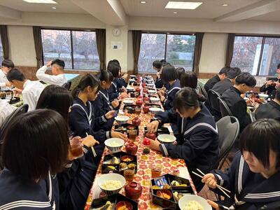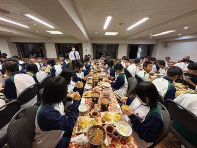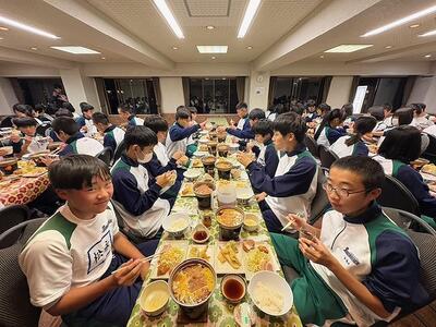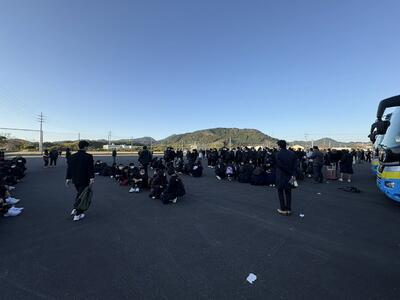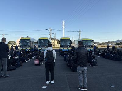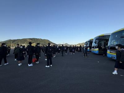 べてくれました。その後、開催地(茨城県水戸市)に向け出発しました。富島中の健闘を心から祈ってます。