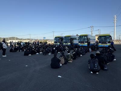 たくさんの保護者の方が見送りに来てくれました。行ってきま~す!!