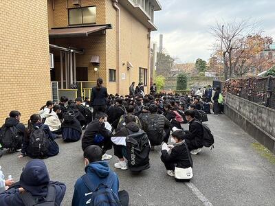 12月5日(金)の6校時に、7日(日)から出発する修学旅行の出発式を行いました。昨日まで、インフルエンザの感染拡大の影響により、学年閉鎖となっていましたので、オンラインで実施しました。修学旅行実行委員が進行し、校長先生の話、実行委員の話など、これから始まる2泊3日の修学旅行への意欲を高める式でした。