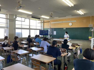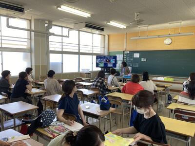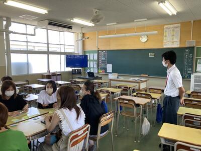 暑い中でしたが、子どもたちの授業の様子を熱心に参観していただきました。エアコンが付いている教室では参観しやすい反面、エアコンが付いていない特別教室では汗をぬぐいながらの参観でした。 保護者の皆さまありがとうございました。