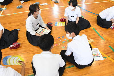 前半は、SDGsの具体的な17の目標の説明を聞き、後半はグループごとに17の目標についてより大切な目標を優先順位を付けて考えるというワークショップでした。子どもたちは、普段の授業とは違い、和気あいあいと意見を出し合いながら、楽しく学習できていました。