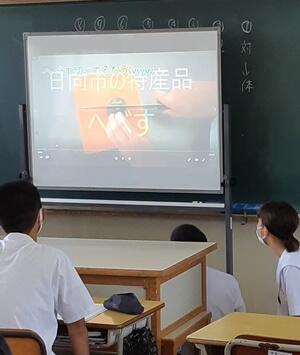 9/17(木)、「日向高校普通科の生徒による説明会」にが実施されました。普通科の探究活動の一環ということで、しっかりと日向高校の特色をプレゼンされ、本校の3年生の20数名の参加者も聞き入っていました。後半は座談会形式で、学校生活や学習方法などを質問し、アドバイスをもらったりする時間となりました。生徒は、進路選択の大きな材料となったと思います。