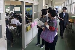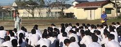11月13日(水)、富島中学校区の小中学校4校の全教員が集まっての研修会を、本校を会場に実施しました。午後の清掃と5校時の授業を参観してもらいました。生徒は小学校の先生にいい所や成長ぶりを見せようと、いつもに増して積極的でした。小学校の教員も自分の教え子の成長を確かめることができ喜んでいたようです。その後、「知」「徳」「体」の3部会で、小中学校で連携、継続しててきる「授業の受け方」「春休みの課題」「スマホの使い方」「体育の指導」のことなどについて協議を深めました。