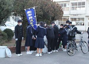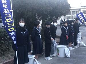1/21(金)登校時の快晴寒空の下、生徒会主催の「通学路ピカピカ大作戦」が実施されました。コロナ禍ではありますが、感染防止対策を万全に施しての実施となりました。
