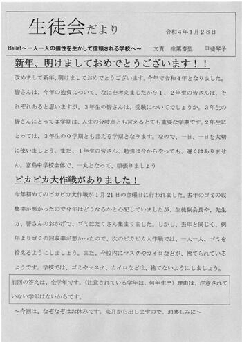 合わせて、1/26(水)に副会長から「生徒会だより」も発行されました。